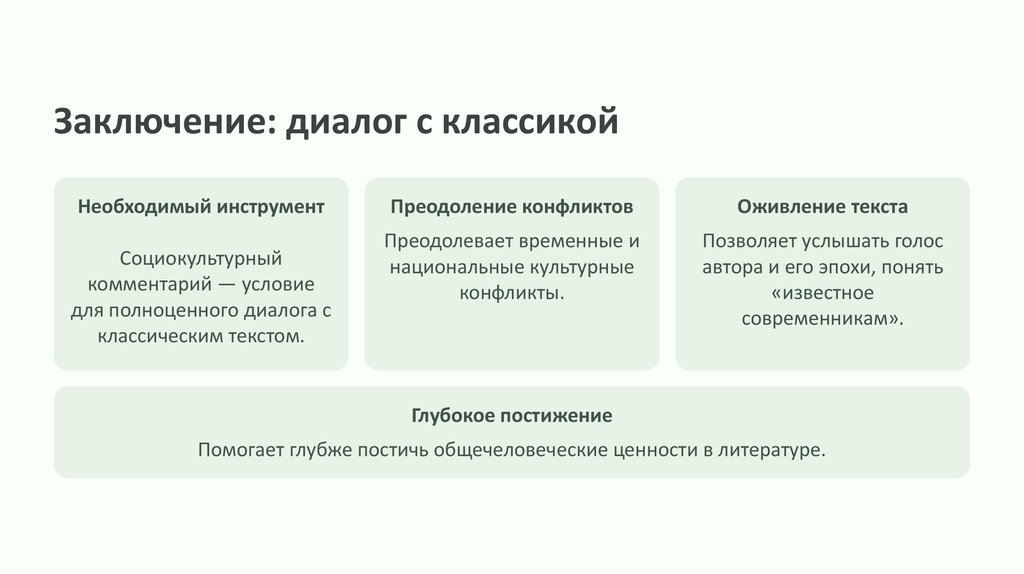 Помогает глубже постичь общечеловеческие ценности в литературе.