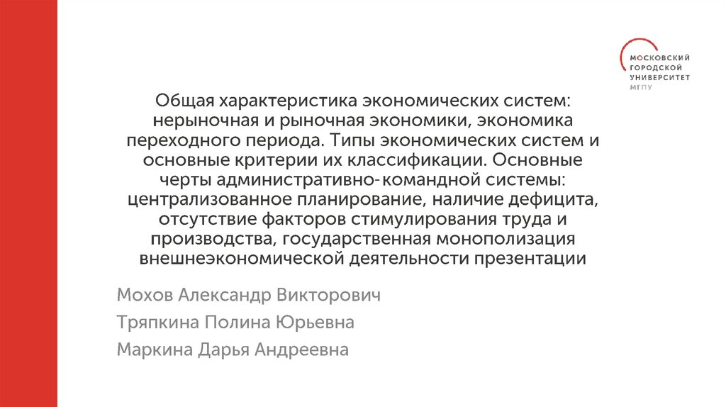 1. Общая характеристика экономических систем: нерыночная и рыночная экономики, экономика переходного периода. Типы экономических