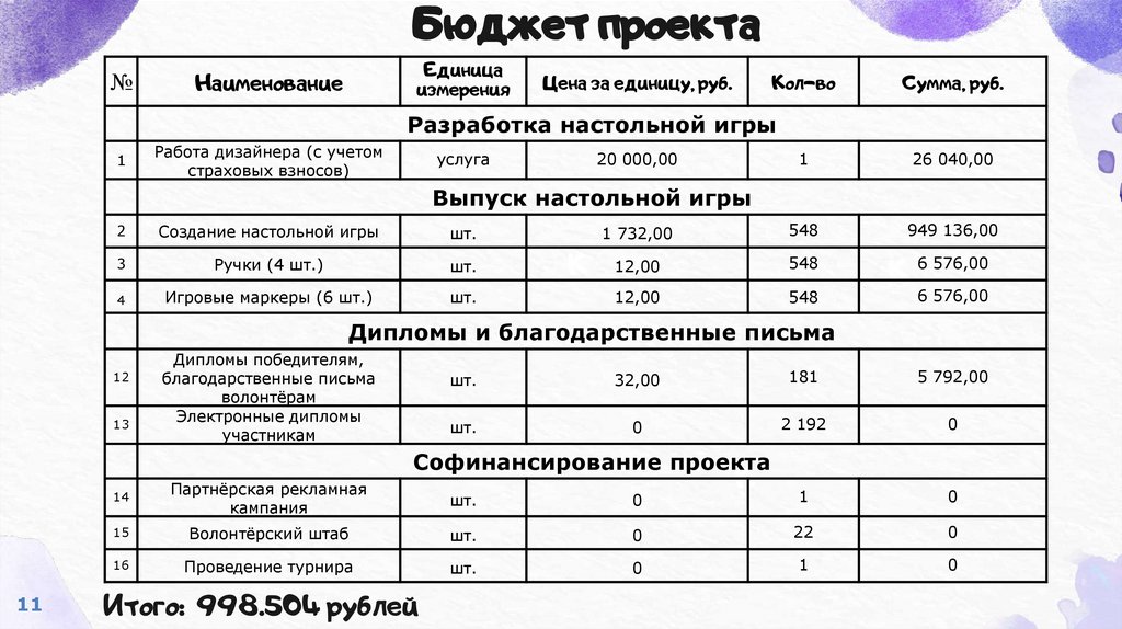Бюджет проекта№