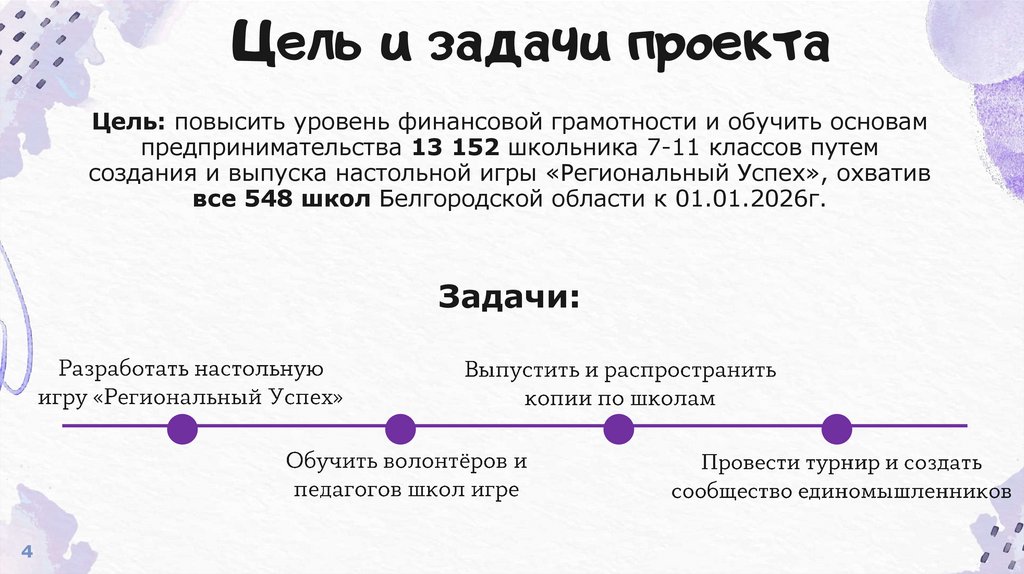 Цель и задачи проектаЦель: повысить уровень финансовой грамотности и обучить основам