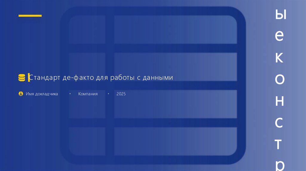 Стандарт де-факто для работы с даннымиИмя докладчика