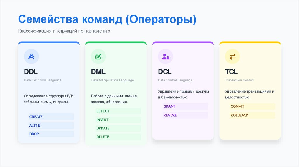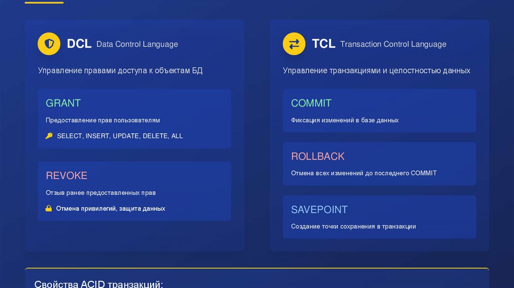 DDL, DML, DCL, TCL