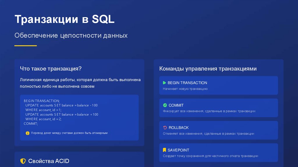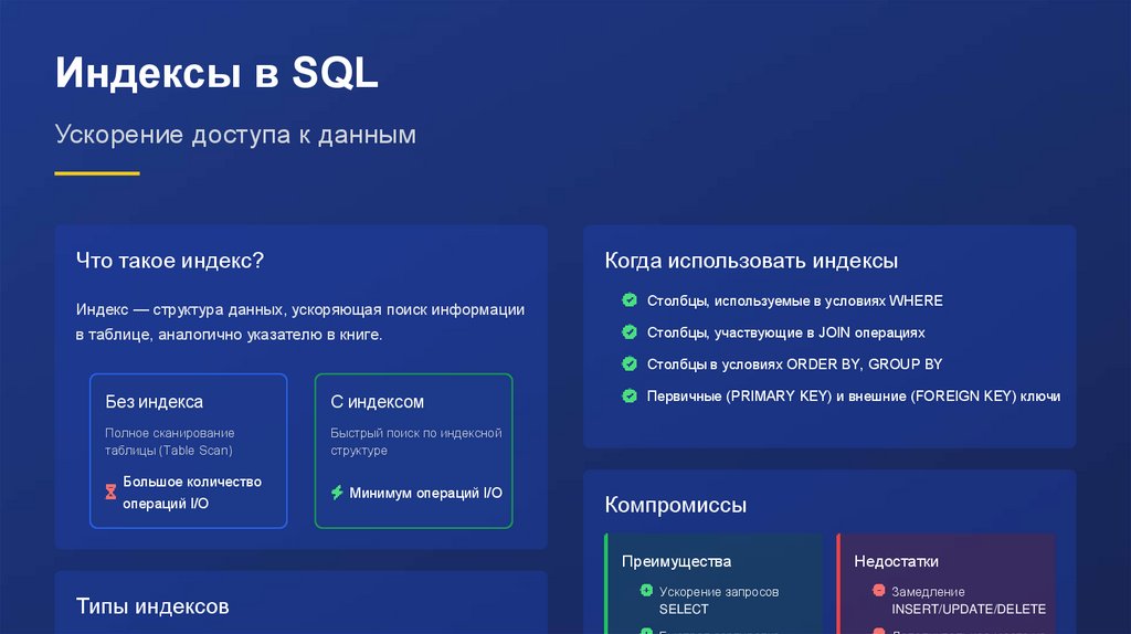 JOIN, Индексы, Транзакции