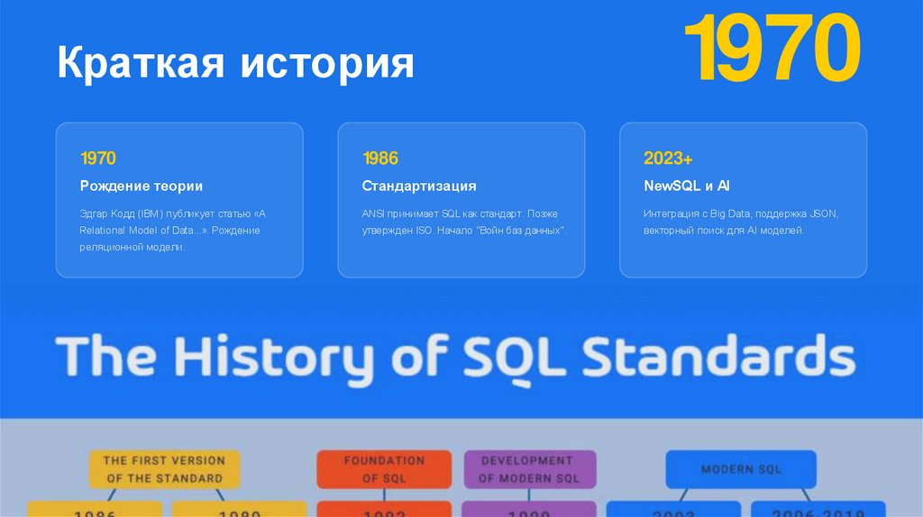 утвержден ISO. Начало "Войн баз данных".