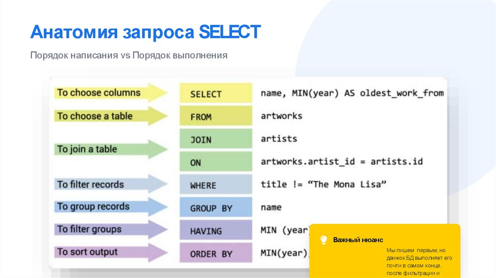 Анатомия запроса SELECTПорядок написания vs Порядок выполнения
