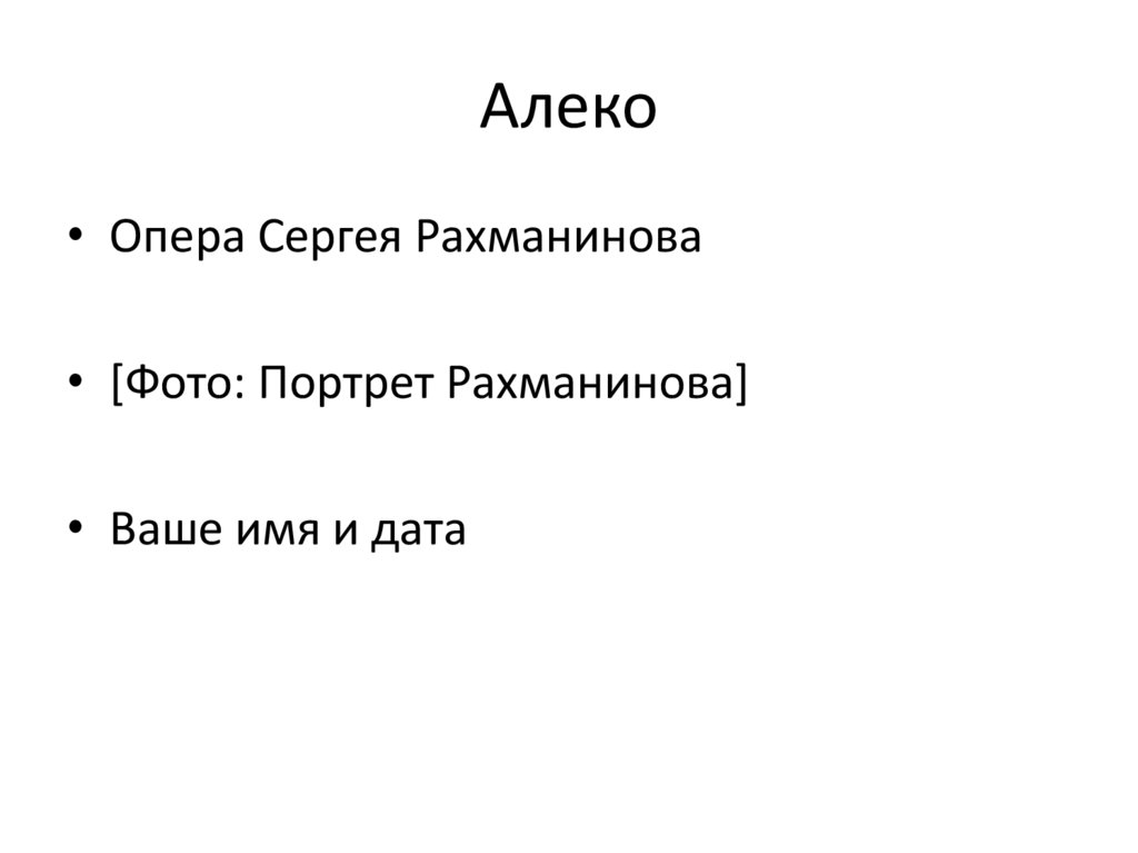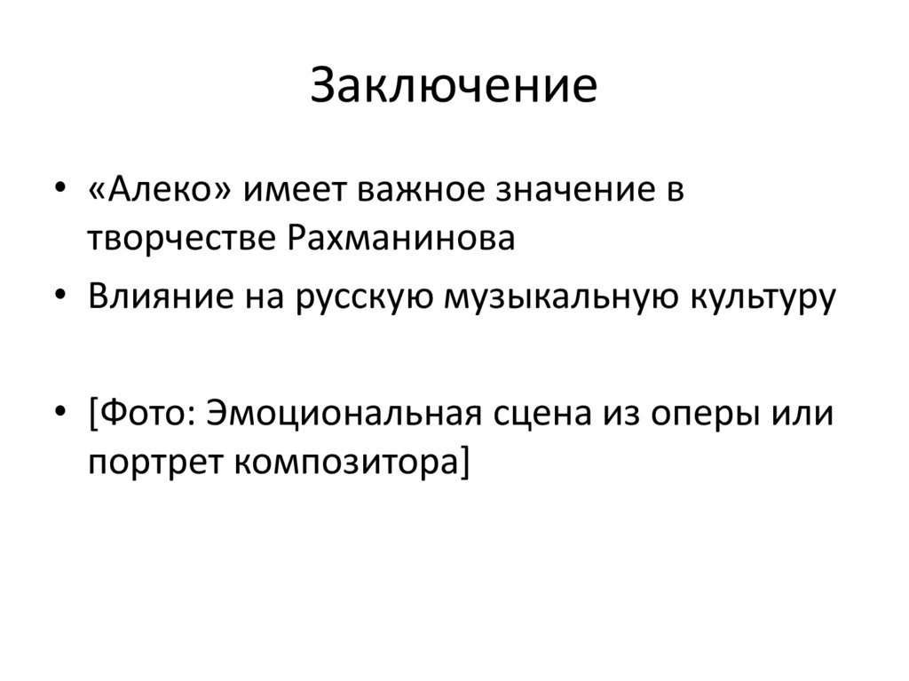 Заключение• «Алеко» имеет важное значение в
