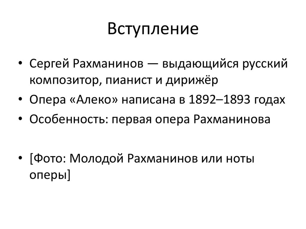 Вступление• Сергей Рахманинов — выдающийся русский