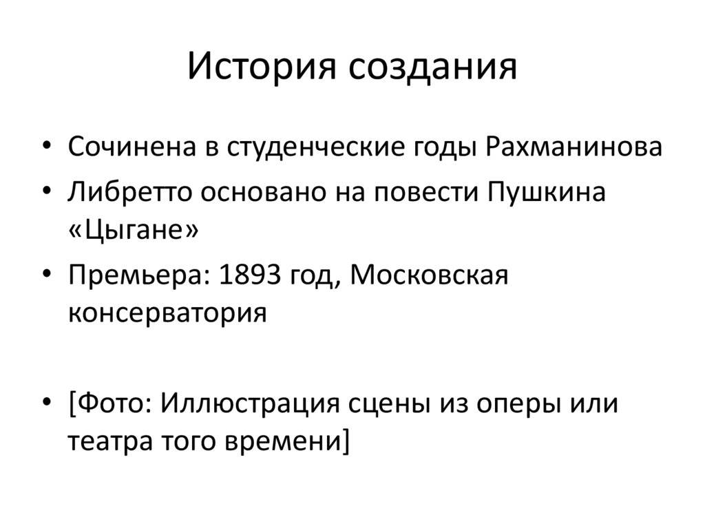 • Особенность: первая опера Рахманинова