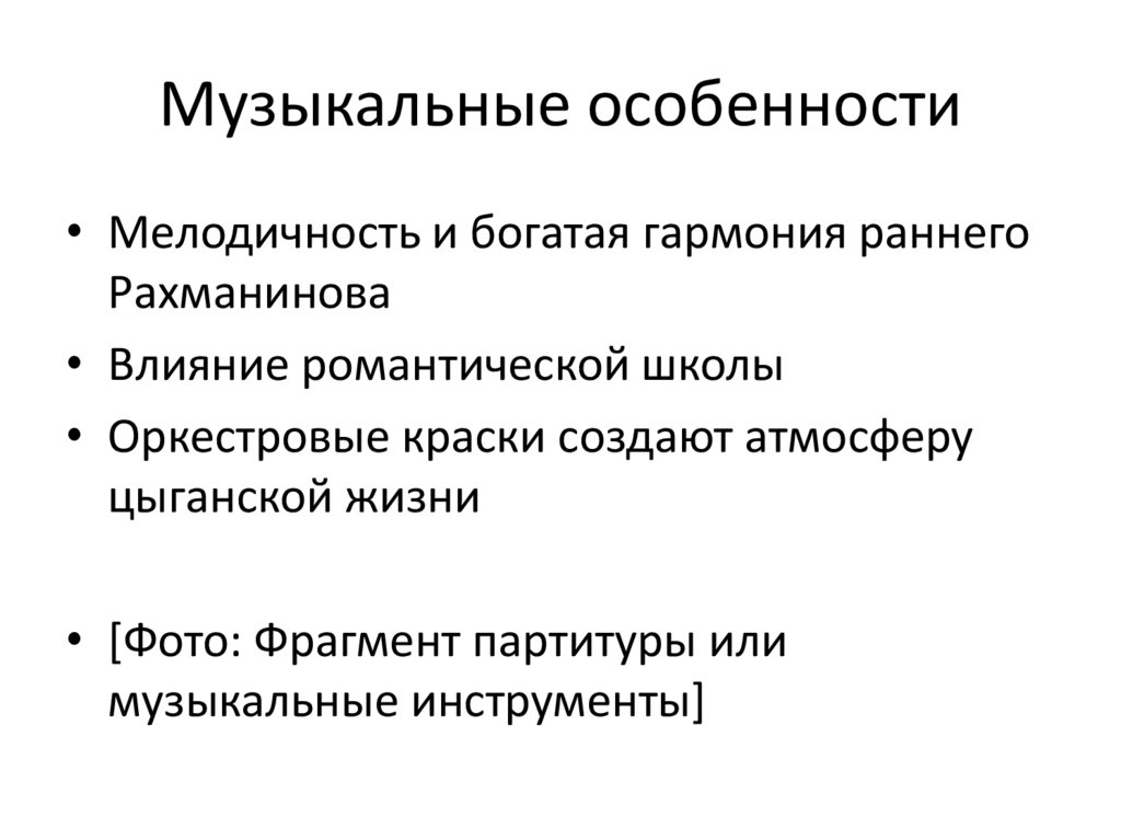 Музыкальные особенности• Мелодичность и богатая гармония раннего