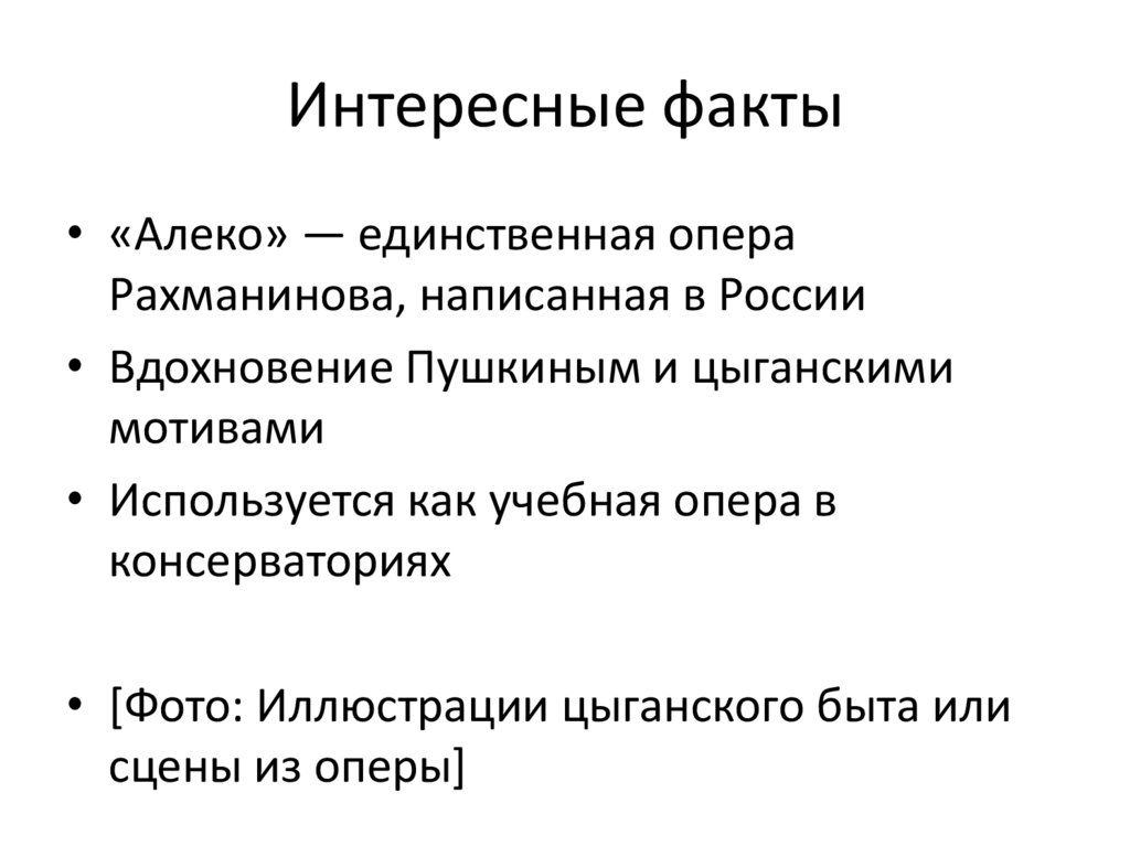 Интересные факты• «Алеко» — единственная опера