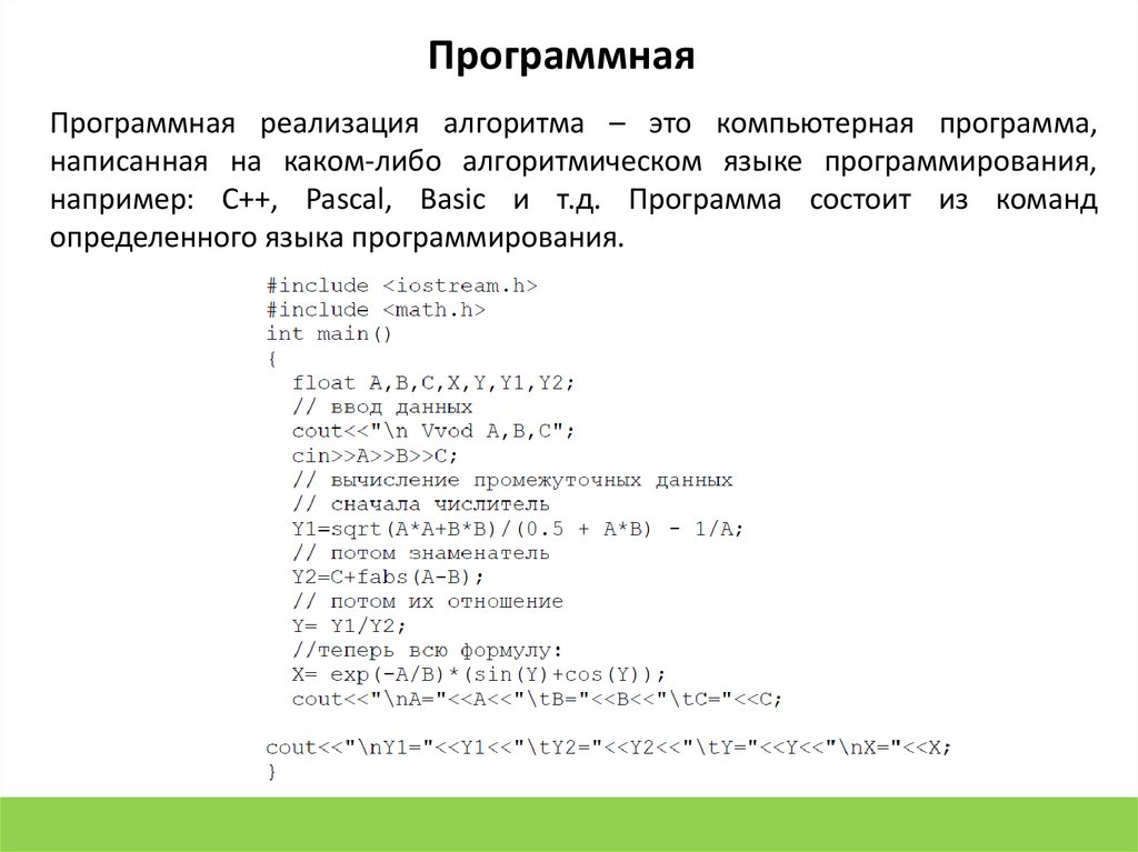 ПрограммнаяПрограммная реализация алгоритма – это компьютерная программа,