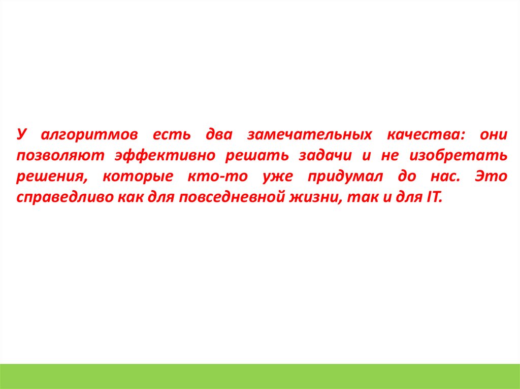 У алгоритмов есть два замечательных качества: онипозволяют эффективно решать задачи и не изобретать