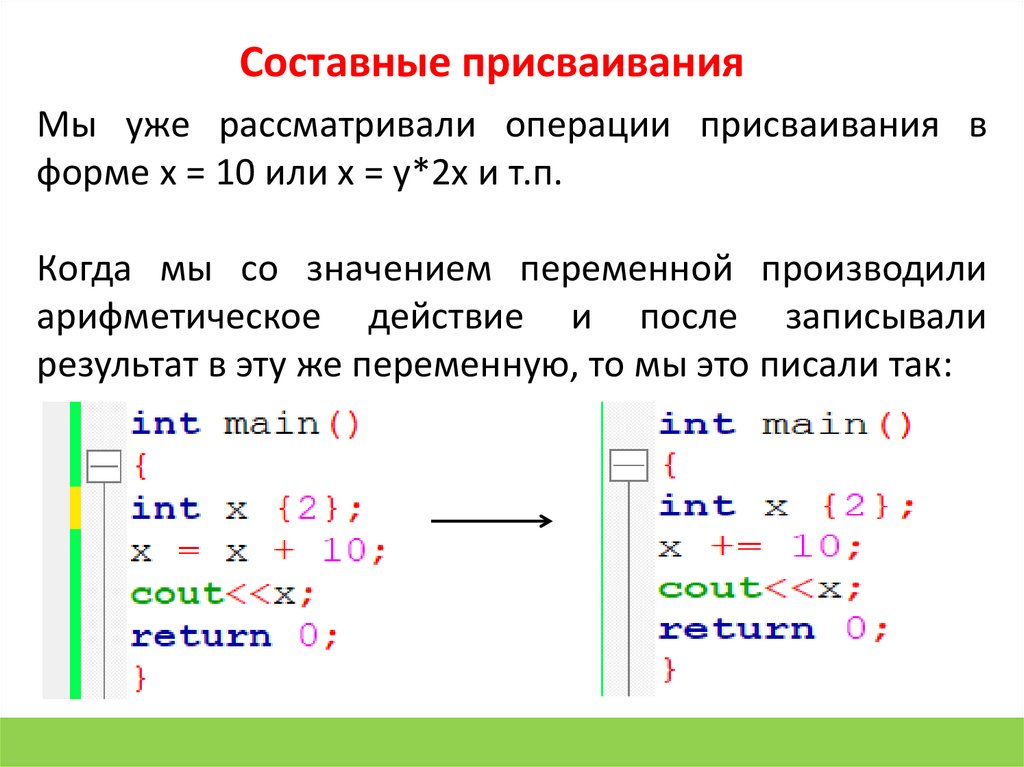 Составные присваиванияМы уже рассматривали операции присваивания в