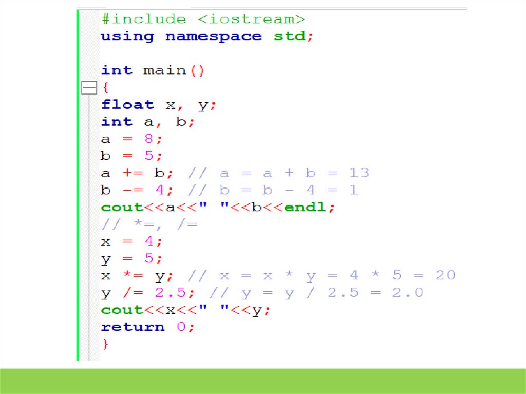 результат в эту же переменную, то мы это писали так: