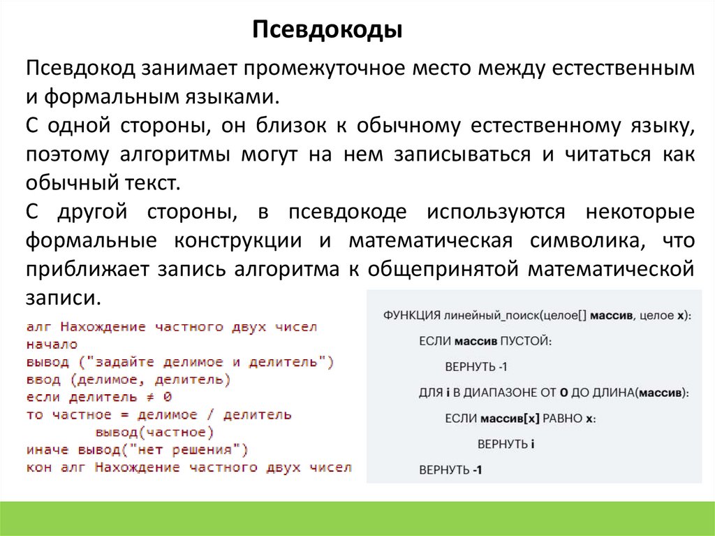 ПсевдокодыПсевдокод занимает промежуточное место между естественным