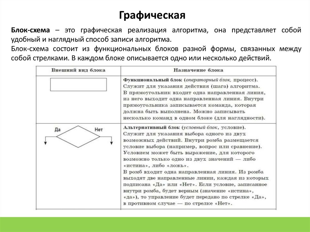 ГрафическаяБлок-схема – это графическая реализация алгоритма, она представляет собой