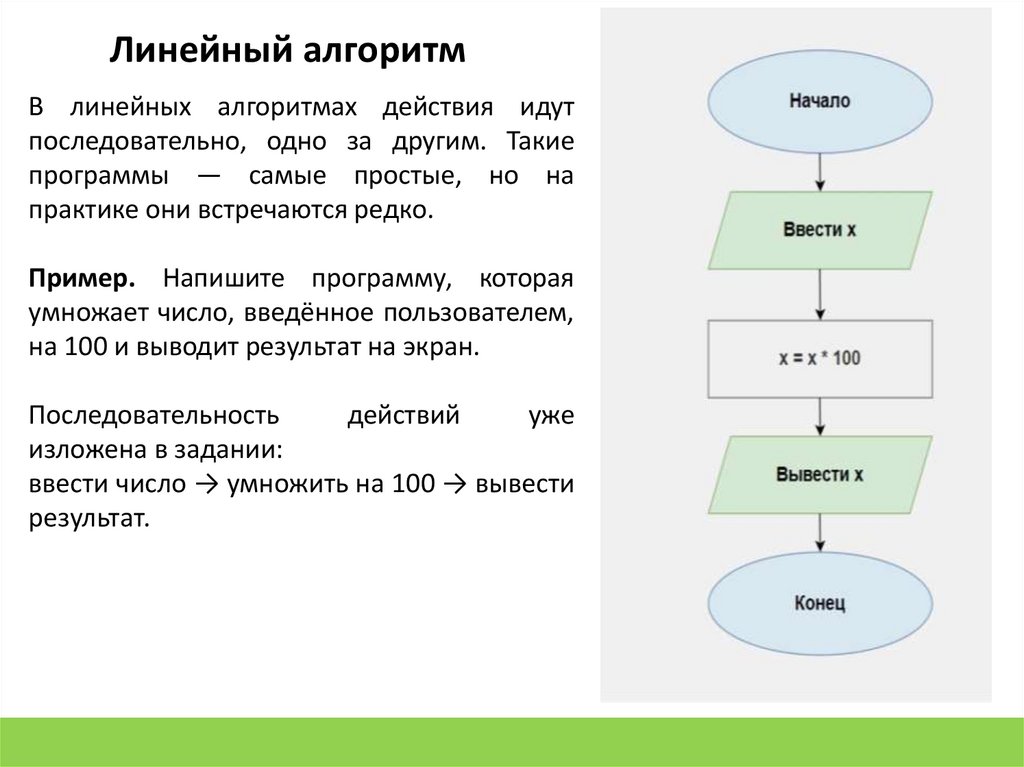Линейный алгоритмВ линейных алгоритмах действия идут