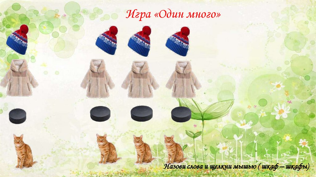 Назови слова и щелкни мышью ( шкаф – шкафы)