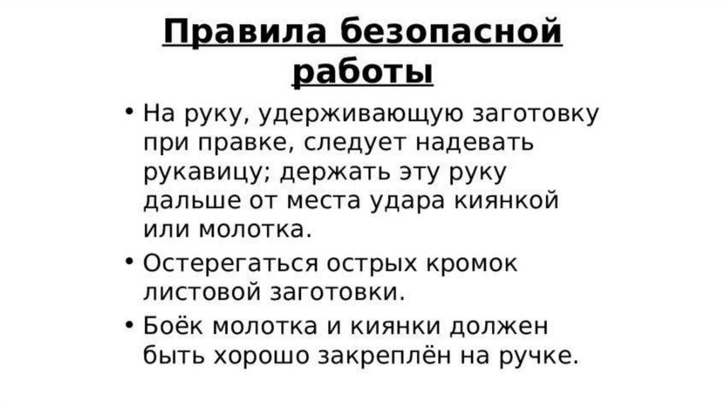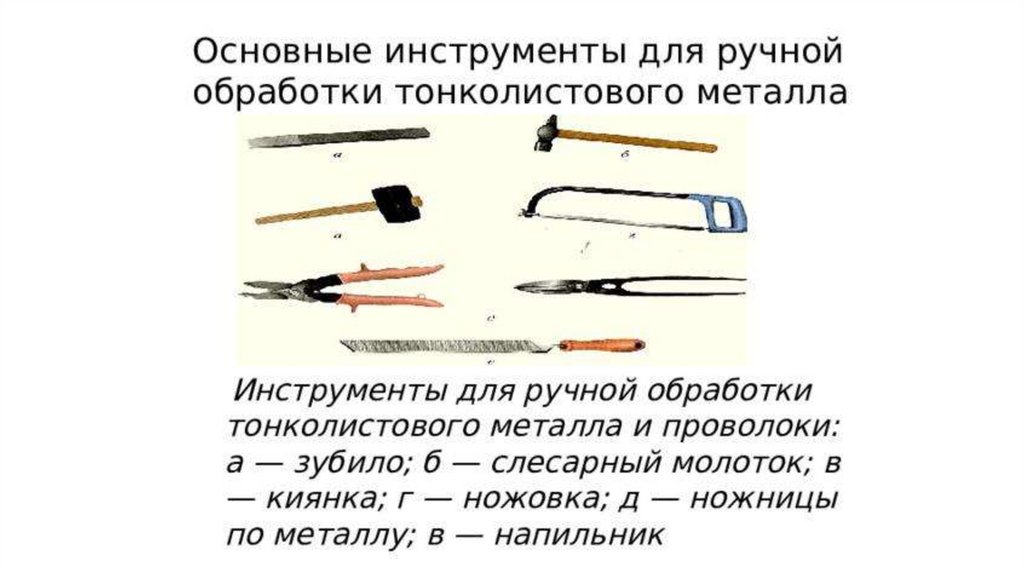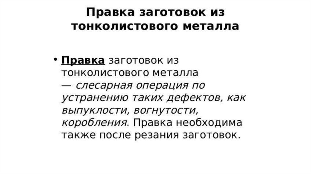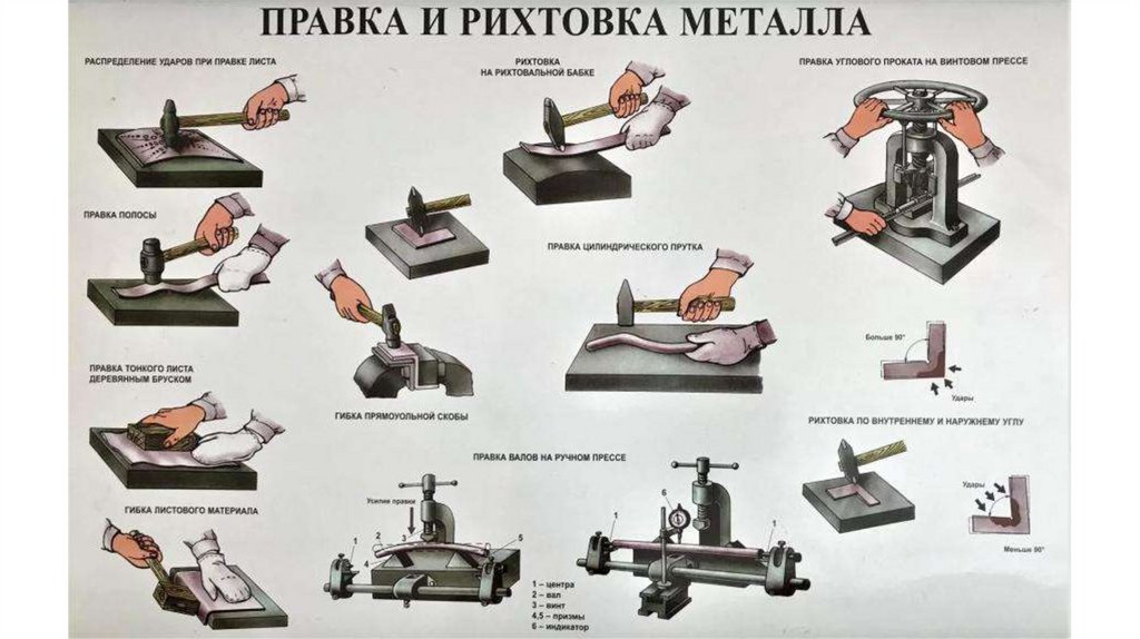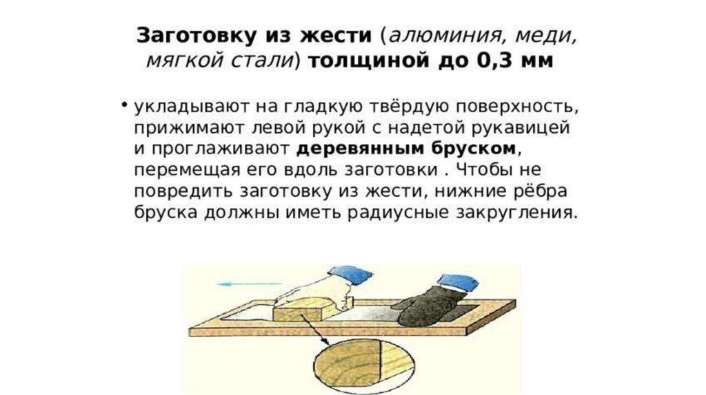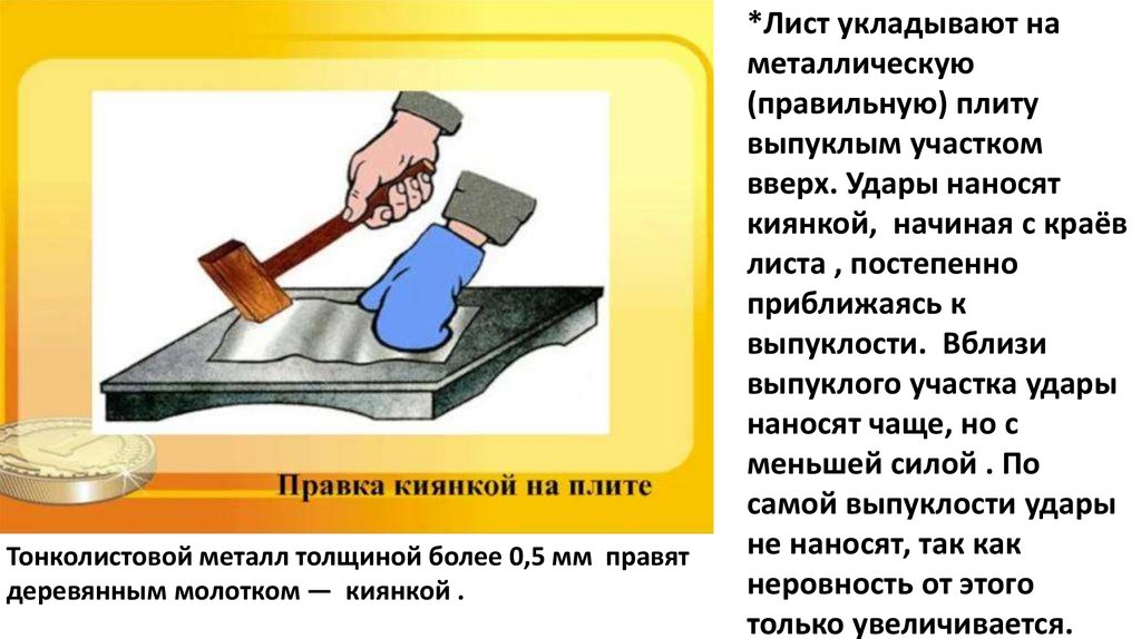 Тонколистовой металл толщиной более 0,5 мм правятдеревянным молотком — киянкой .