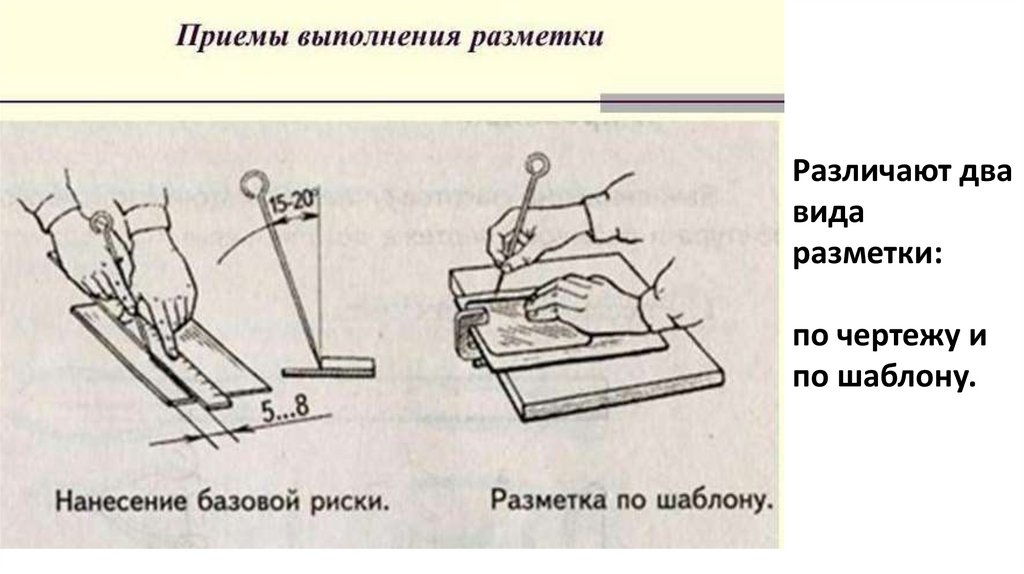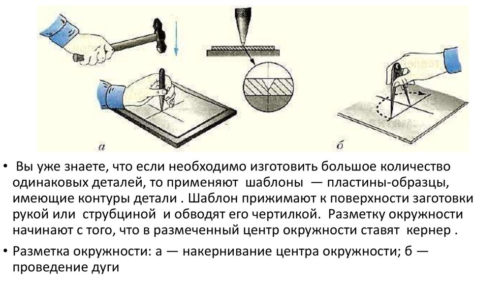 имеющие контуры детали . Шаблон прижимают к поверхности заготовки