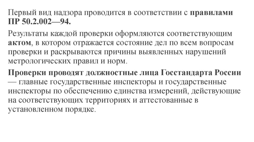 Первый вид надзора проводится в соответствии с правиламиПР 50.2.002—94.