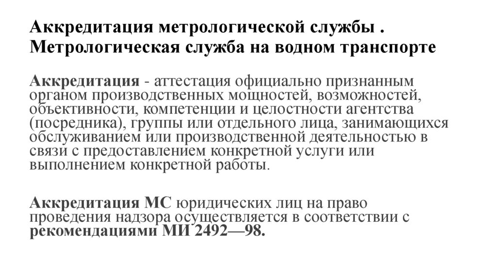 Аккредитация метрологической службы .Метрологическая служба на водном транспорте
