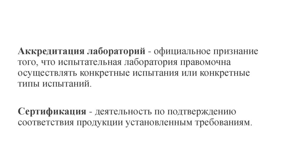 Аккредитация лабораторий - официальное признаниетого, что испытательная лаборатория правомочна