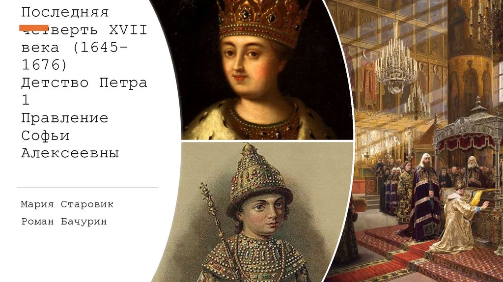 1. Последняя четверть XVII века (1645–1676) Детство Петра 1 Правление Софьи Алексеевны