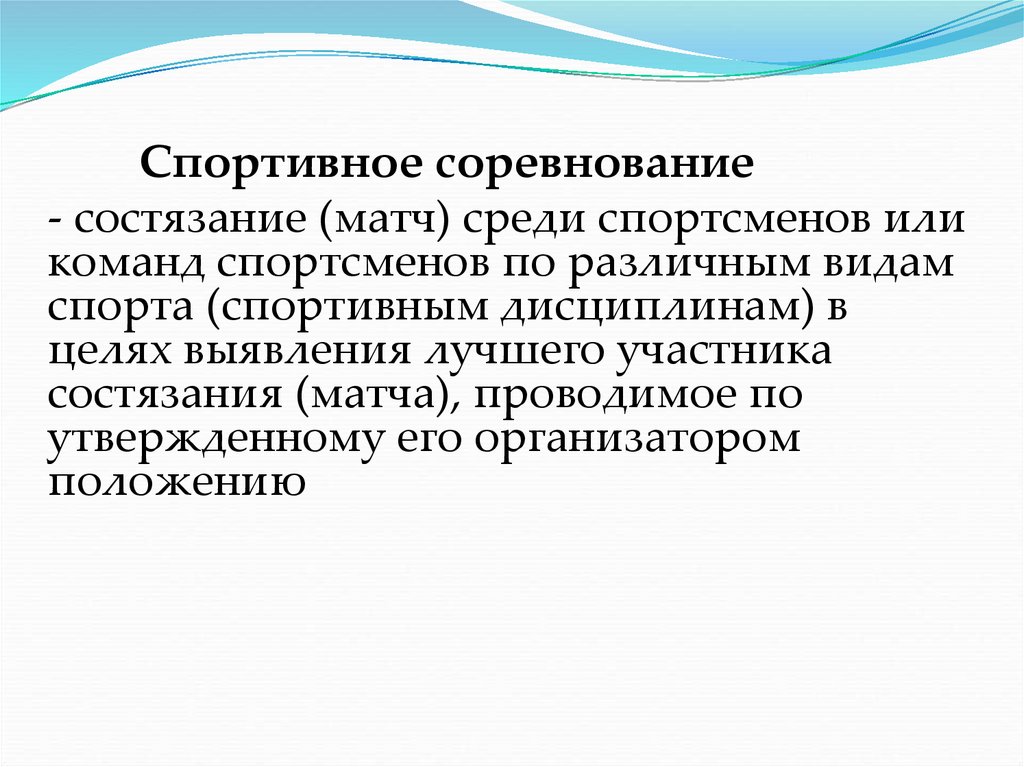 Спортивное соревнование- состязание (матч) среди спортсменов или