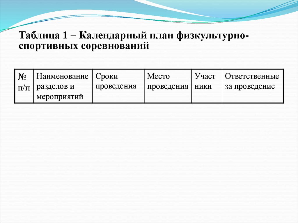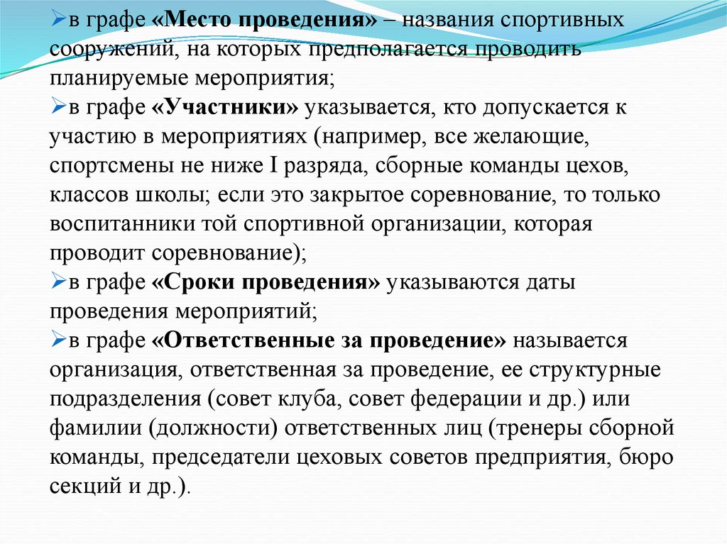 - календарный план спортивных соревнований;
