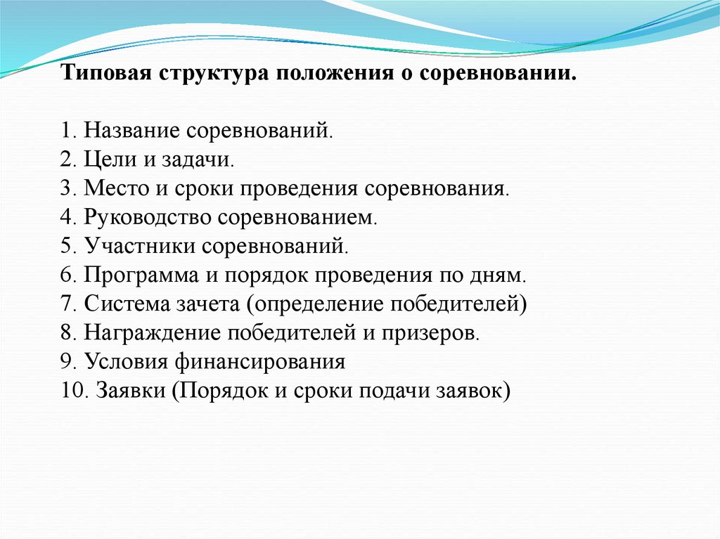 - положение о соревновании;
