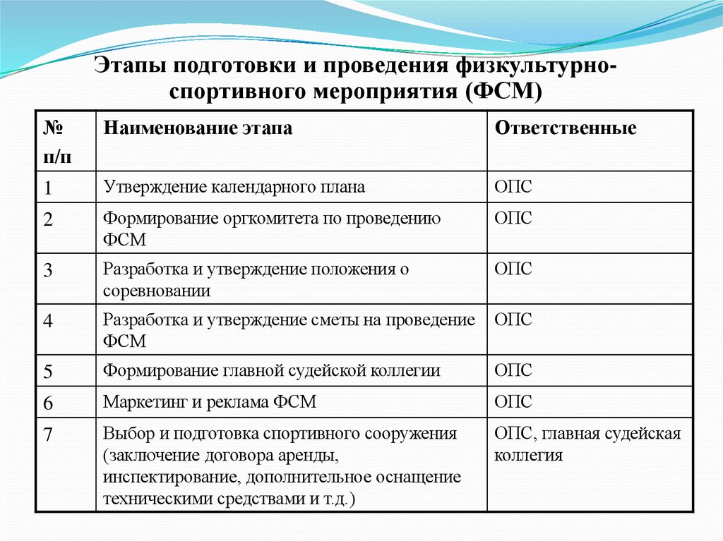 физкультурно-спортивных мероприятий (ФСМ)