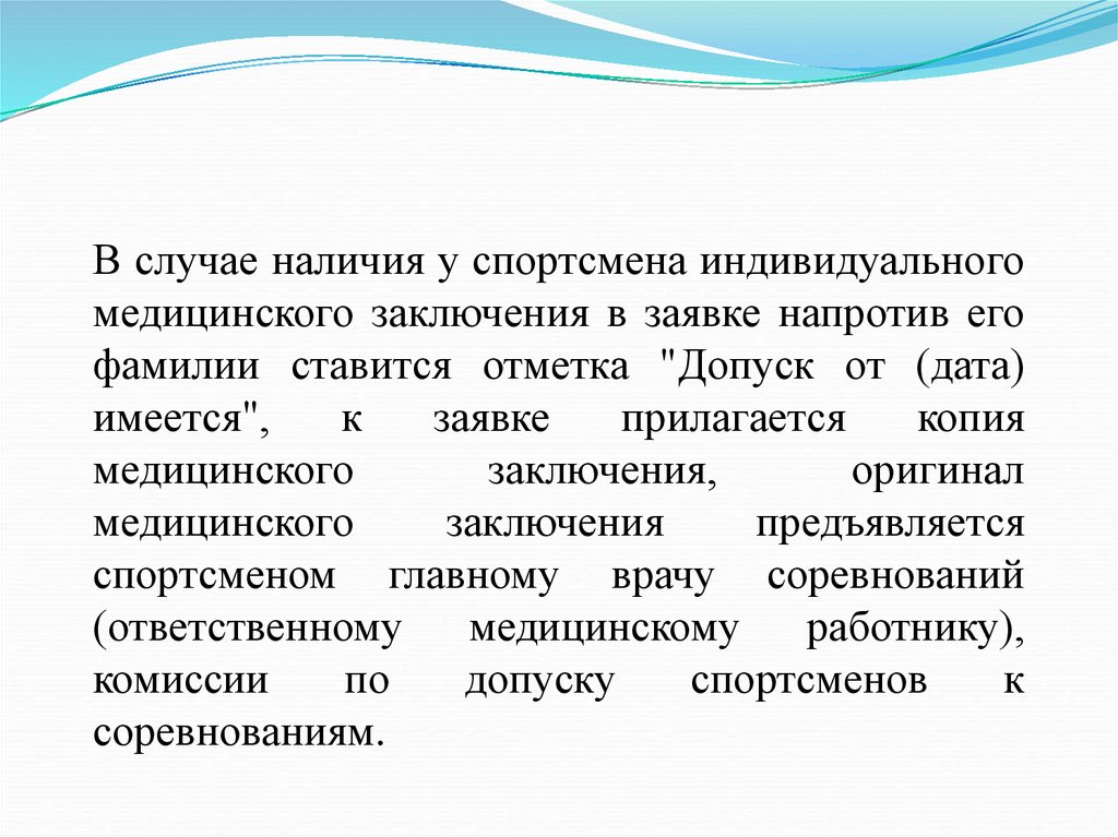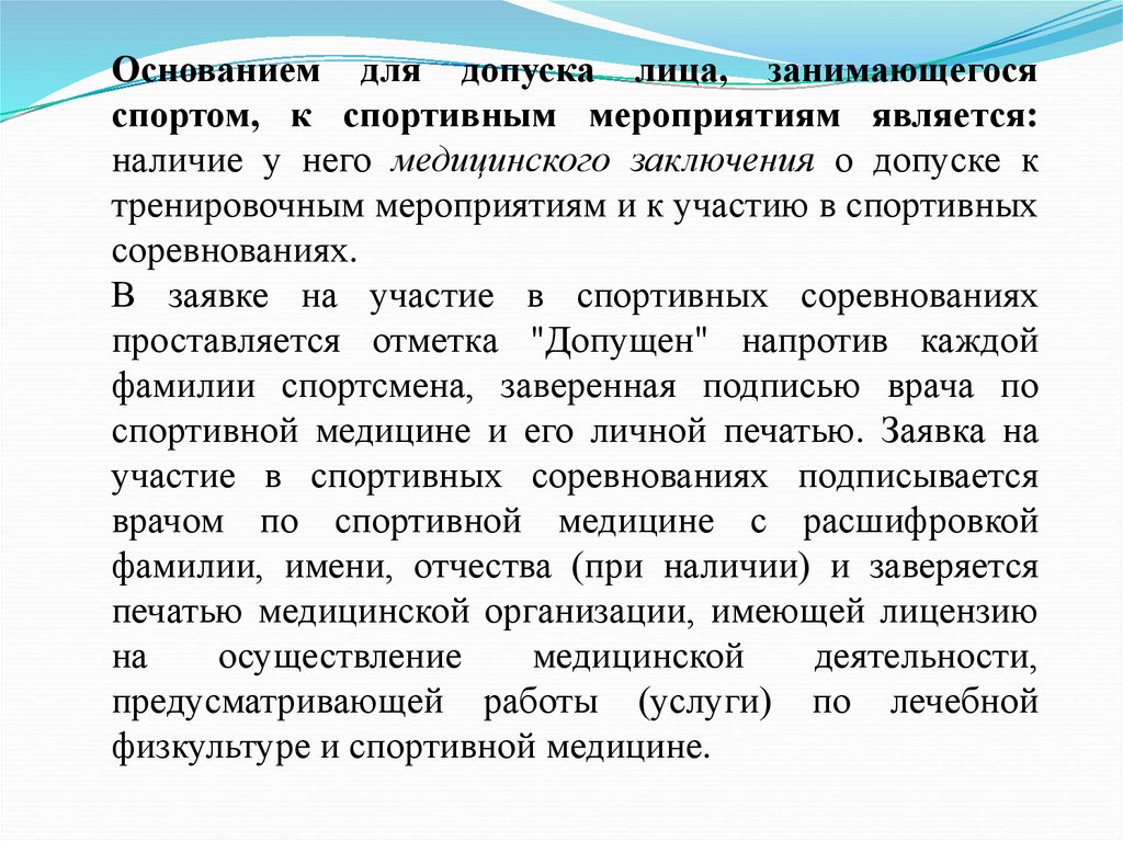 условия допуска к участию в спортивном