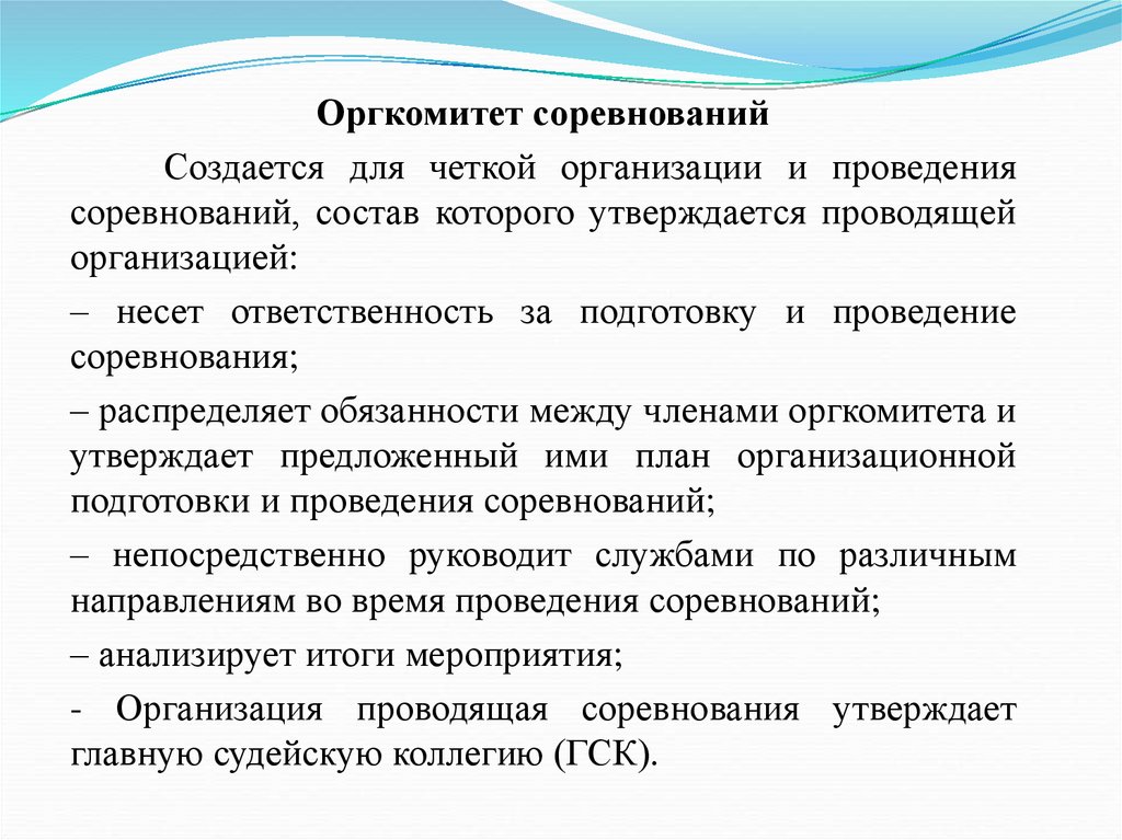 Оргкомитет соревнованийСоздается для четкой организации и проведения