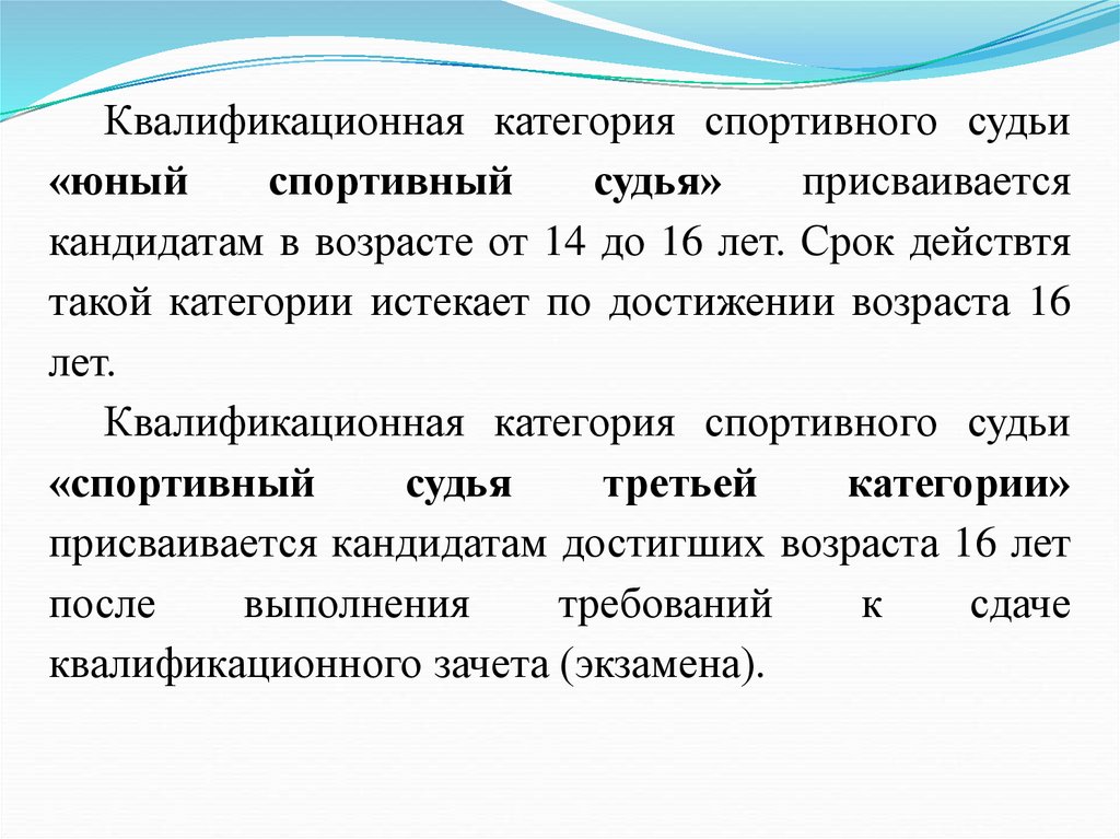 Квалификационная категория спортивного судьи«юный