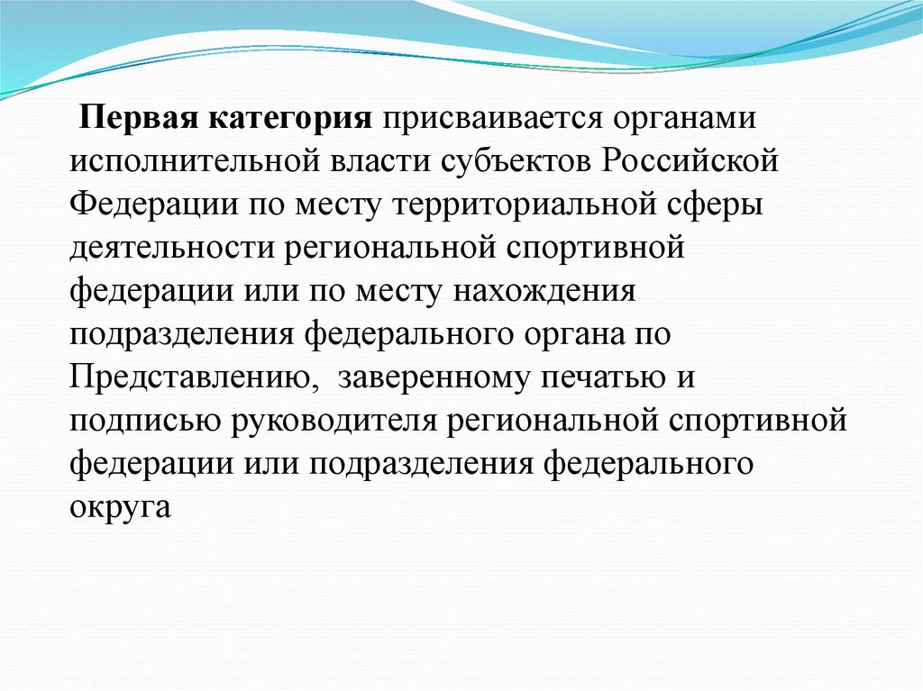 Первая категория присваивается органамиисполнительной власти субъектов Российской