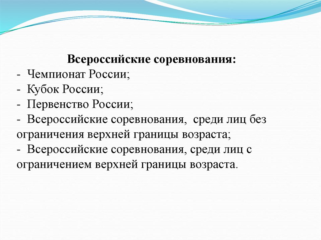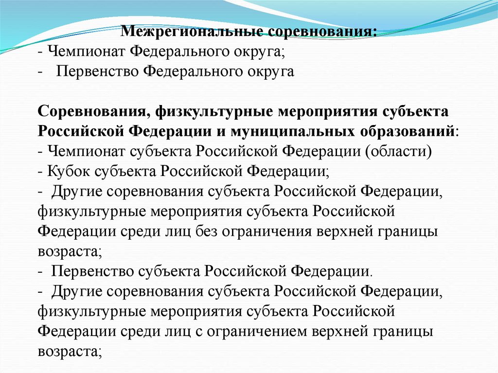 - Другие соревнования субъекта Российской Федерации,