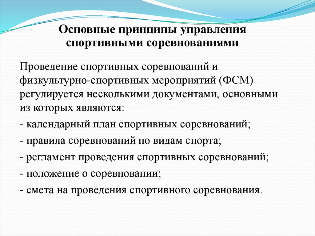 Основные принципы управленияспортивными соревнованиями