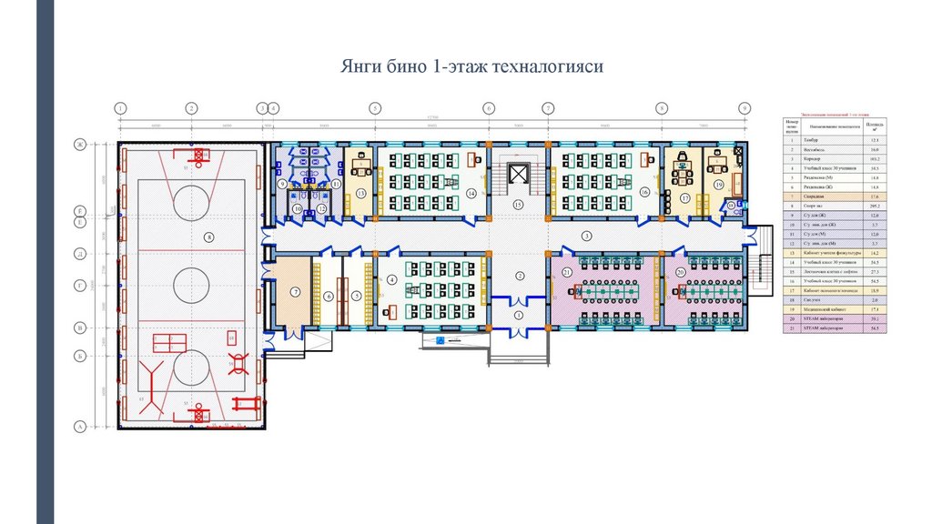 Янги 330 ўринли ўқув биноси ва Спорт зал (12х24) қуриш