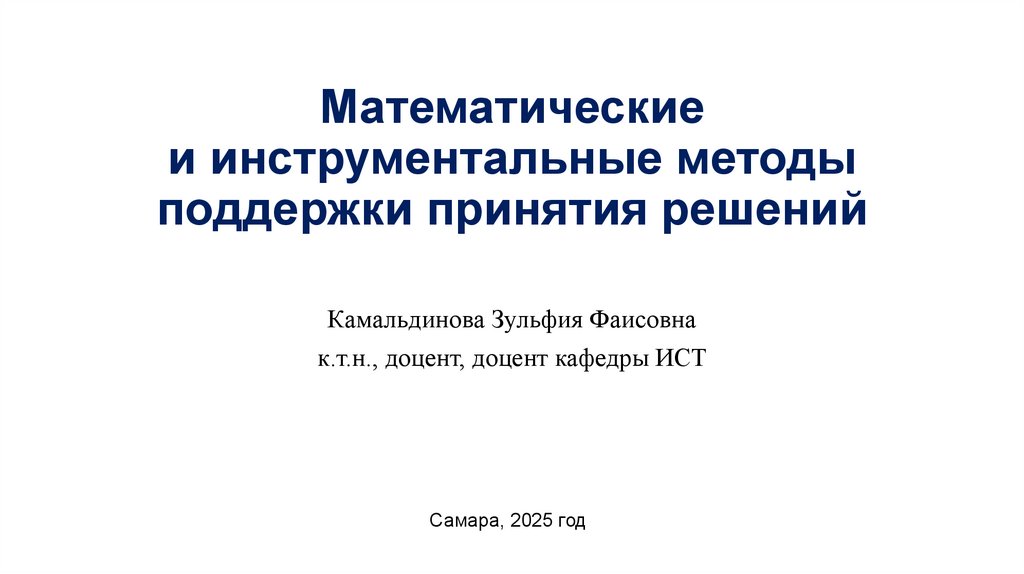 7. Лиманова, Н.И. Математические и инструментальные методы поддержки принятия решений: учеб. Пособие