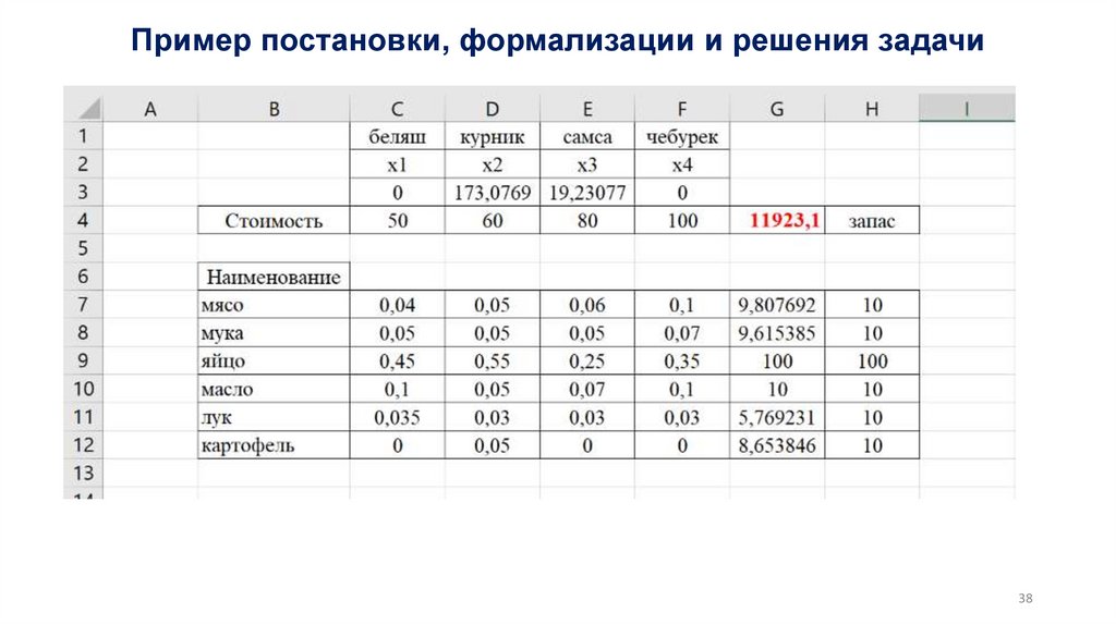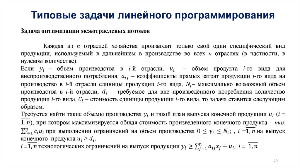 1. Задача о диете, о рационе питания, распределение ресурсов, план производства