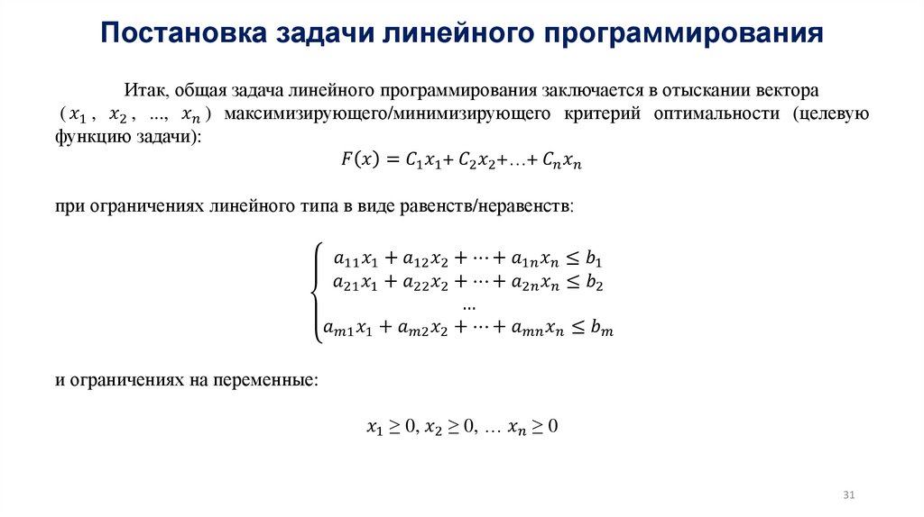 входящих в него переменных, кроме того, на эти переменные накладываются некоторые