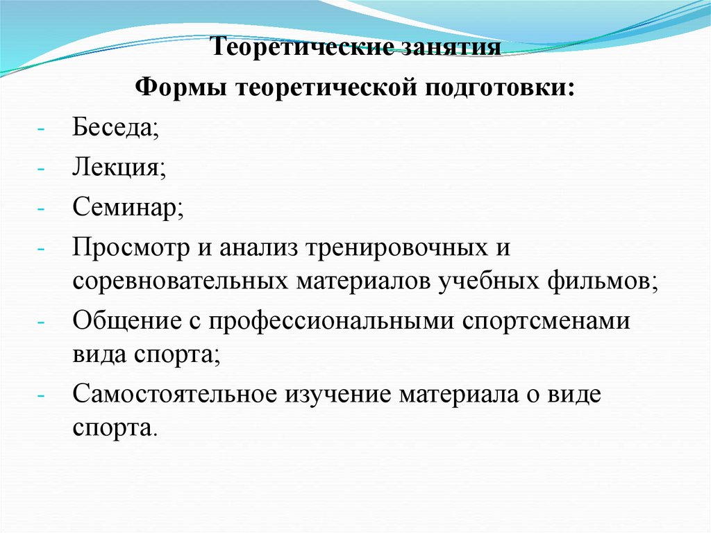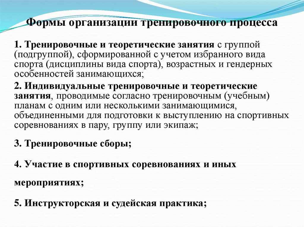 Формы организации тренировочного процесса1. Тренировочные и теоретические занятия с группой