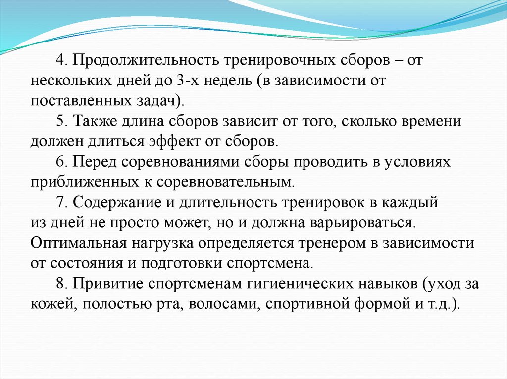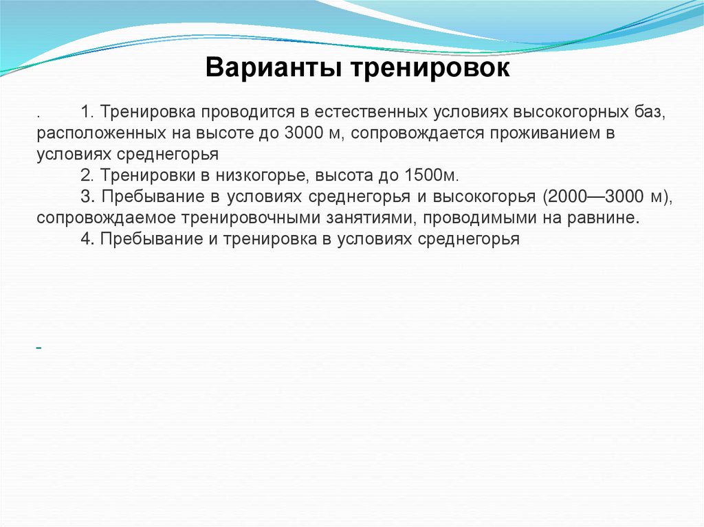 1. Тренировка проводится в естественных условиях высокогорных баз,