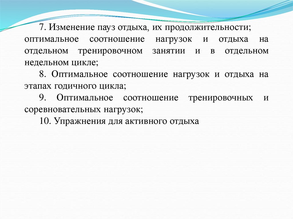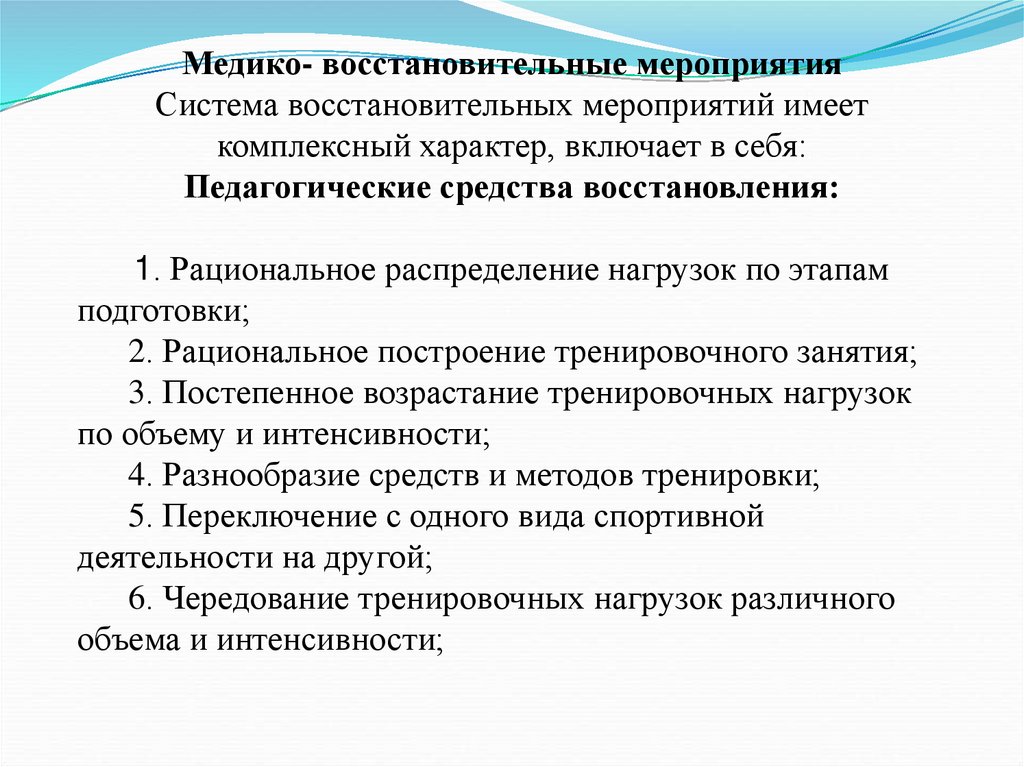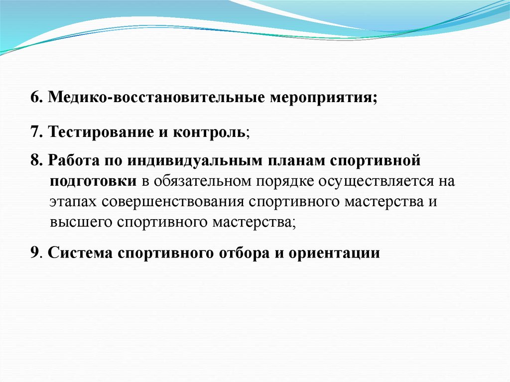 6. Медико-восстановительные мероприятия;7. Тестирование и контроль;