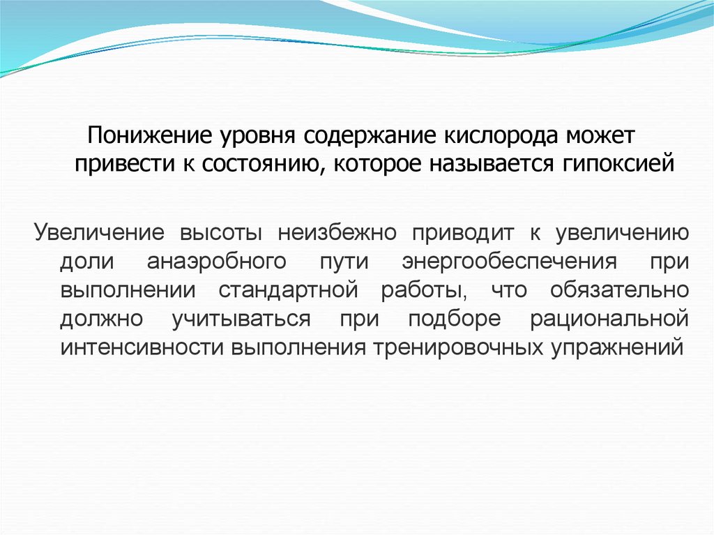Понижение уровня содержание кислорода можетпривести к состоянию, которое называется гипоксией