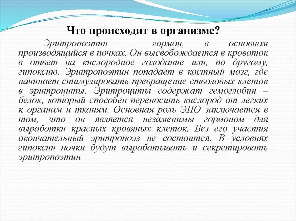гипоксию. Эритропоэтин попадает в костный мозг, где