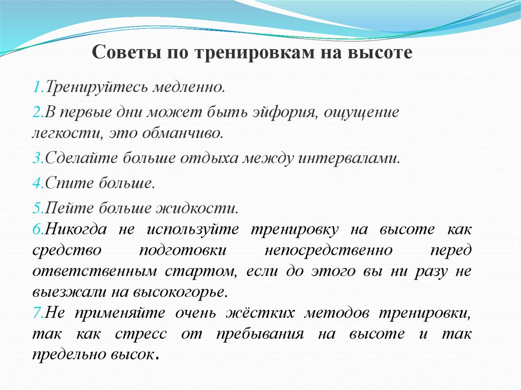 Советы по тренировкам на высоте1.Тренируйтесь медленно.
