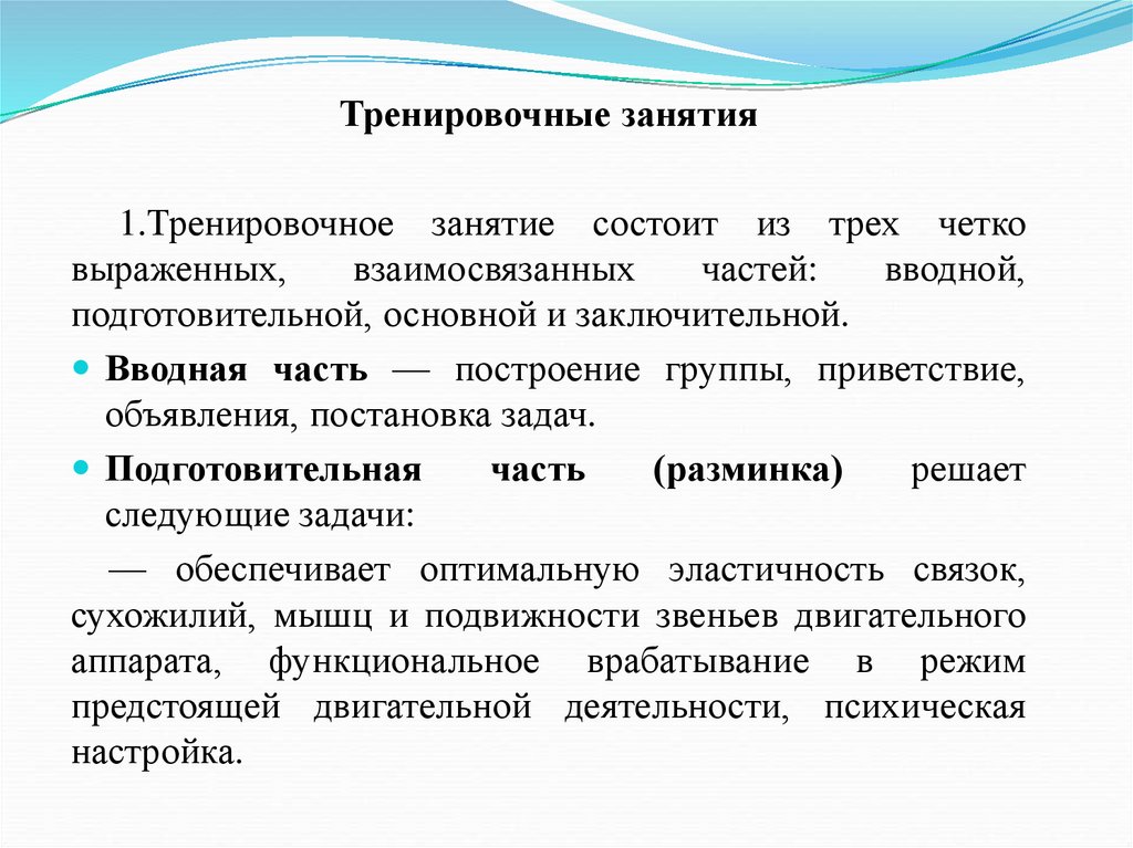 Тренировочные занятия1.Тренировочное занятие состоит из трех четко