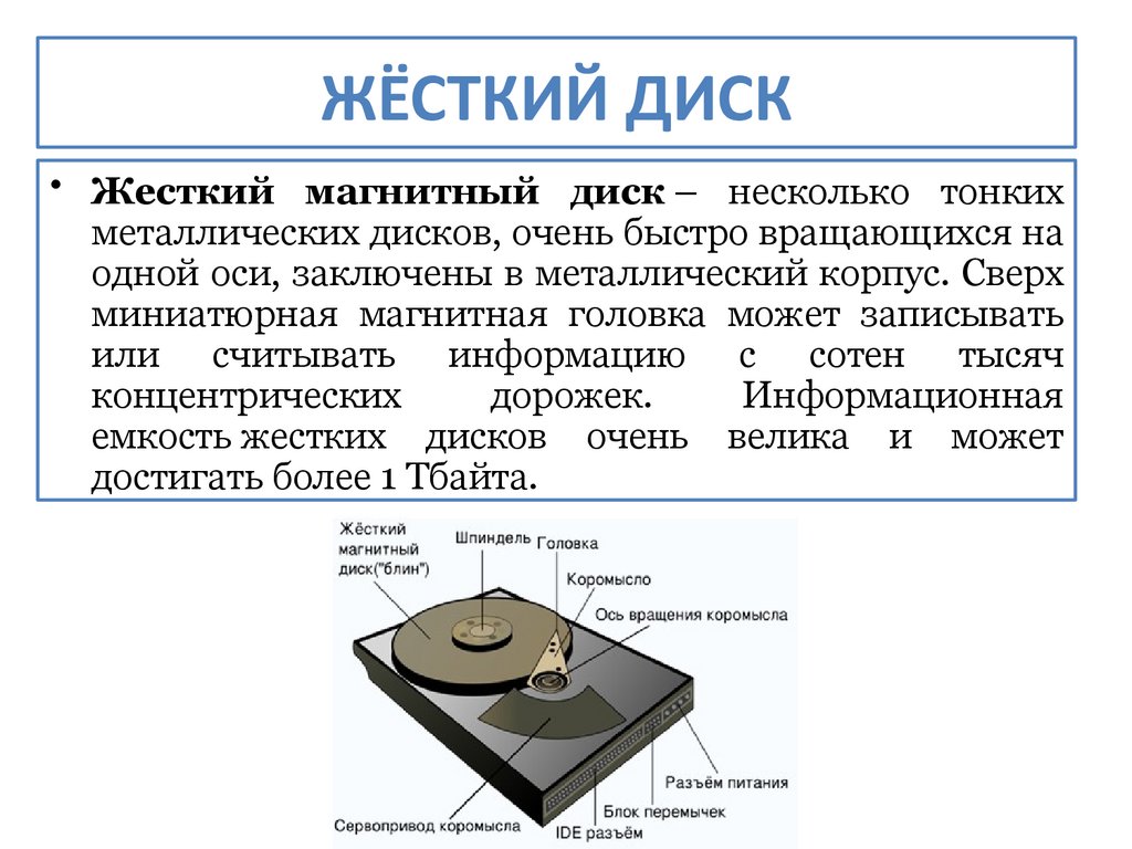 ЖЁСТКИЙ ДИСК• Жесткий магнитный диск – несколько тонких